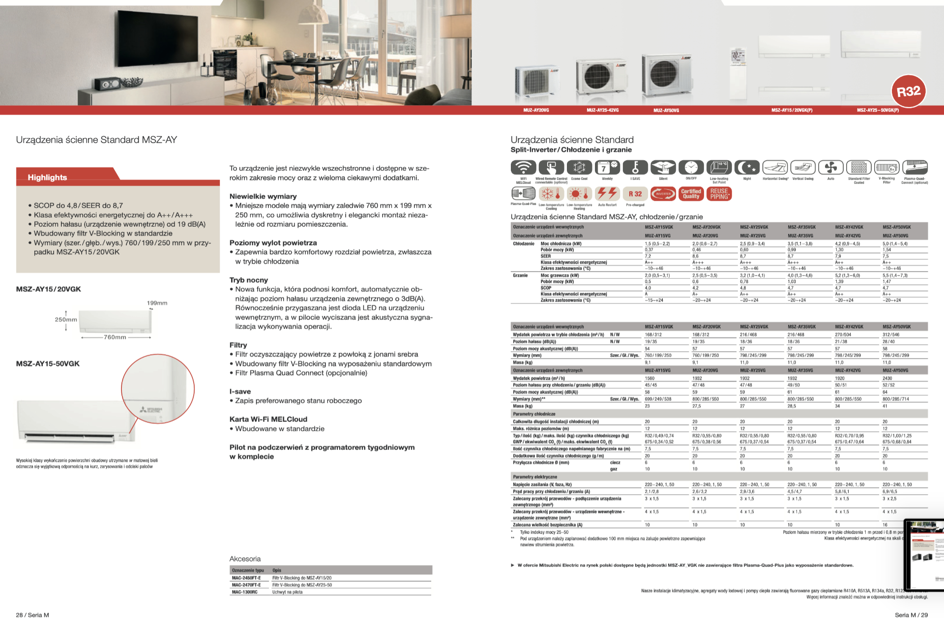 MSZ-AY wyróżnia się wysoką efektywnością energetyczną (SEER do 8,7, SCOP do 4,8) oraz nowoczesnym systemem filtracji. Wbudowany filtr V-Blocking i filtr z jonami srebra skutecznie eliminują bakterie, alergeny i nieprzyjemne zapachy, dbając o czystość powietrza.