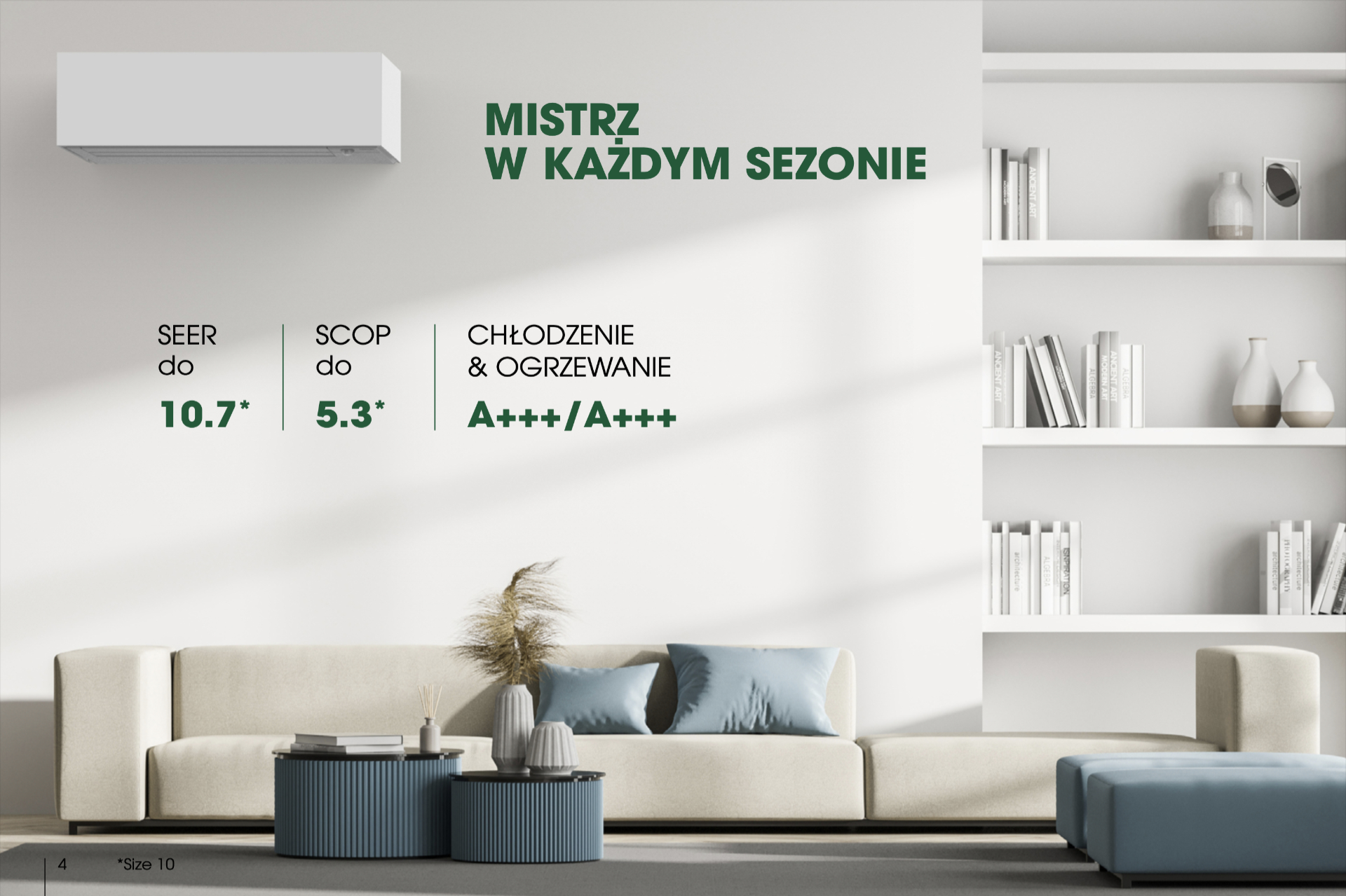 Daiseikai 10 to klimatyzator klasy premium, łączący innowacyjny design z najwyższą efektywnością energetyczną. Dostępny w wersjach kolorystycznych białej i drewnianej, zapewnia doskonały komfort cieplny oraz zaawansowane systemy oczyszczania powietrza. Idealny do zastosowań zarówno w systemach pojedynczych, jak i multi-split